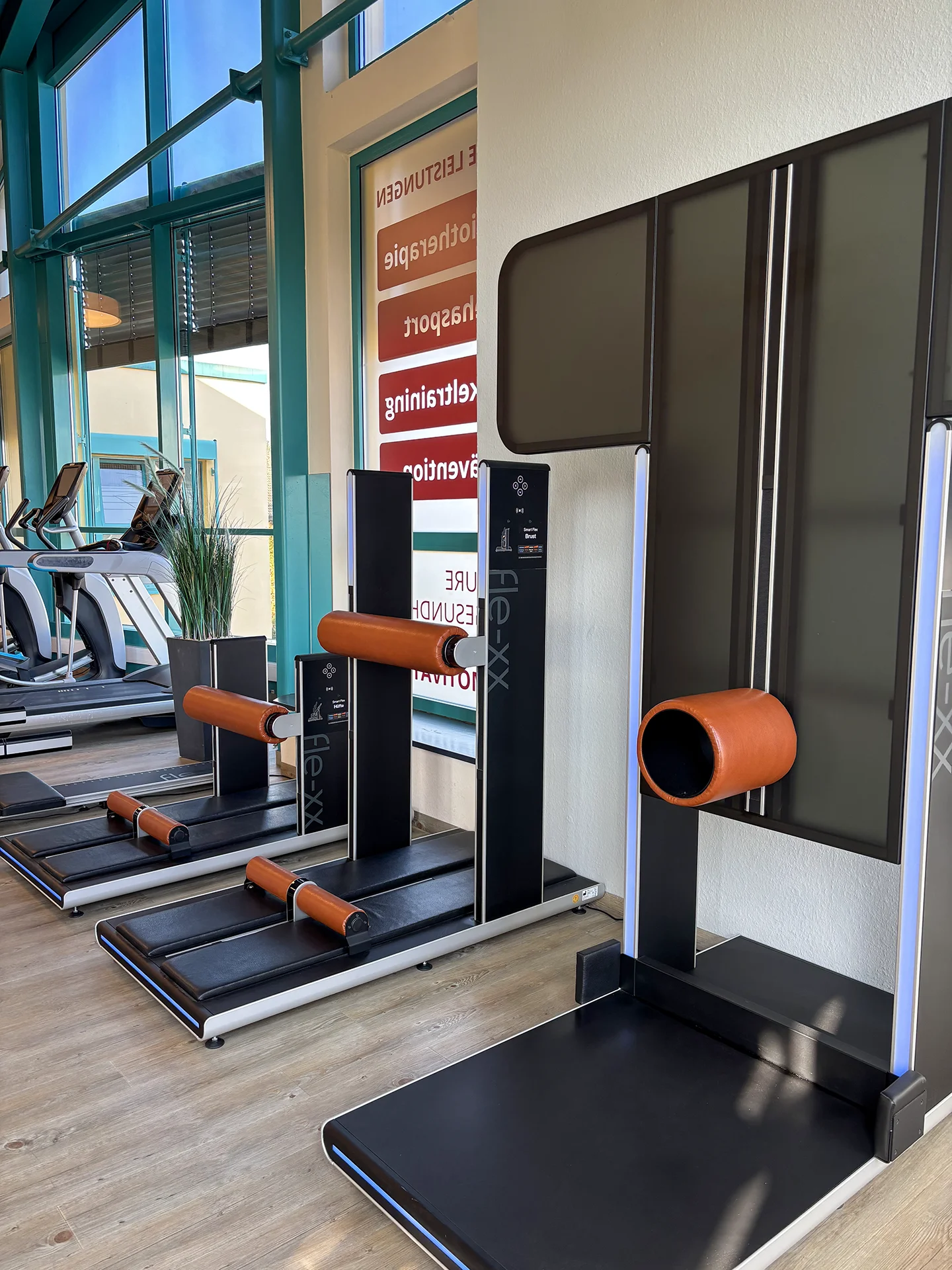 Die eGym-Geräte ermöglichen ein effektives Zirkeltraining, das alle Muskelgruppen stärkt und über Transponder-Armbänder individuell angepasst wird. Das Muskellängentraining am Flex Zirkel ergänzt dies, indem es vernachlässigte Muskeln anspricht und Rücken- sowie Gelenkbeschwerden lindert. Beide Trainingsformen verbessern die Beweglichkeit und die Leistungsfähigkeit im Alltag und Beruf.
